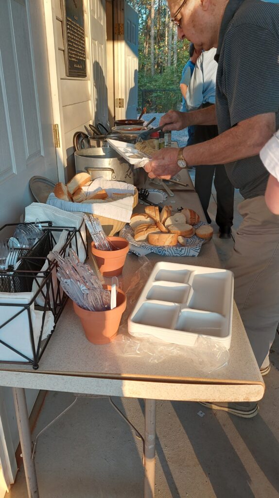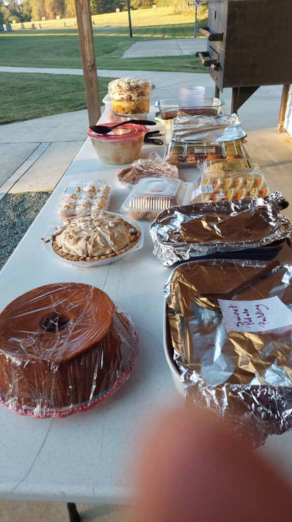 We started with the men cooking again. They provided spaghetti with 3 different kinds of sauces. There was salad with great toppings and bread. It was all so good. But the treats didn’t stop there. The dessert table had a pumpkin trifle, baked apples with crumble, sweet potato pudding, cookies, brownies and cupcakes. We did not leave hungry. And the talk around the table was great. The kids played on the playground and the basketball court. The weather was perfect.