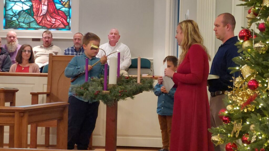 Each Sunday in Advent a family reads scripture, offers prayers and lights the calendar.